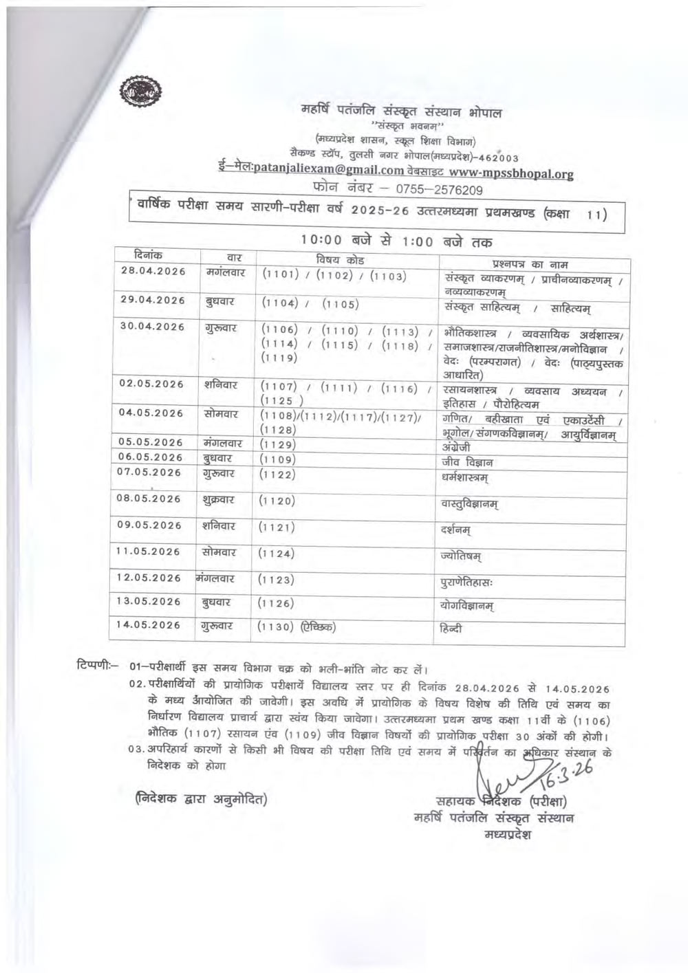 मुख्य परीक्षा प्रवेश पत्र वर्ष- 2025-26